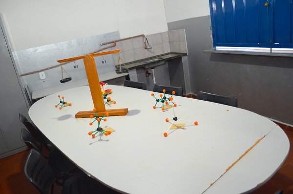 Equipamentos do Centro: balanças artesanais e modelos moleculares diversos