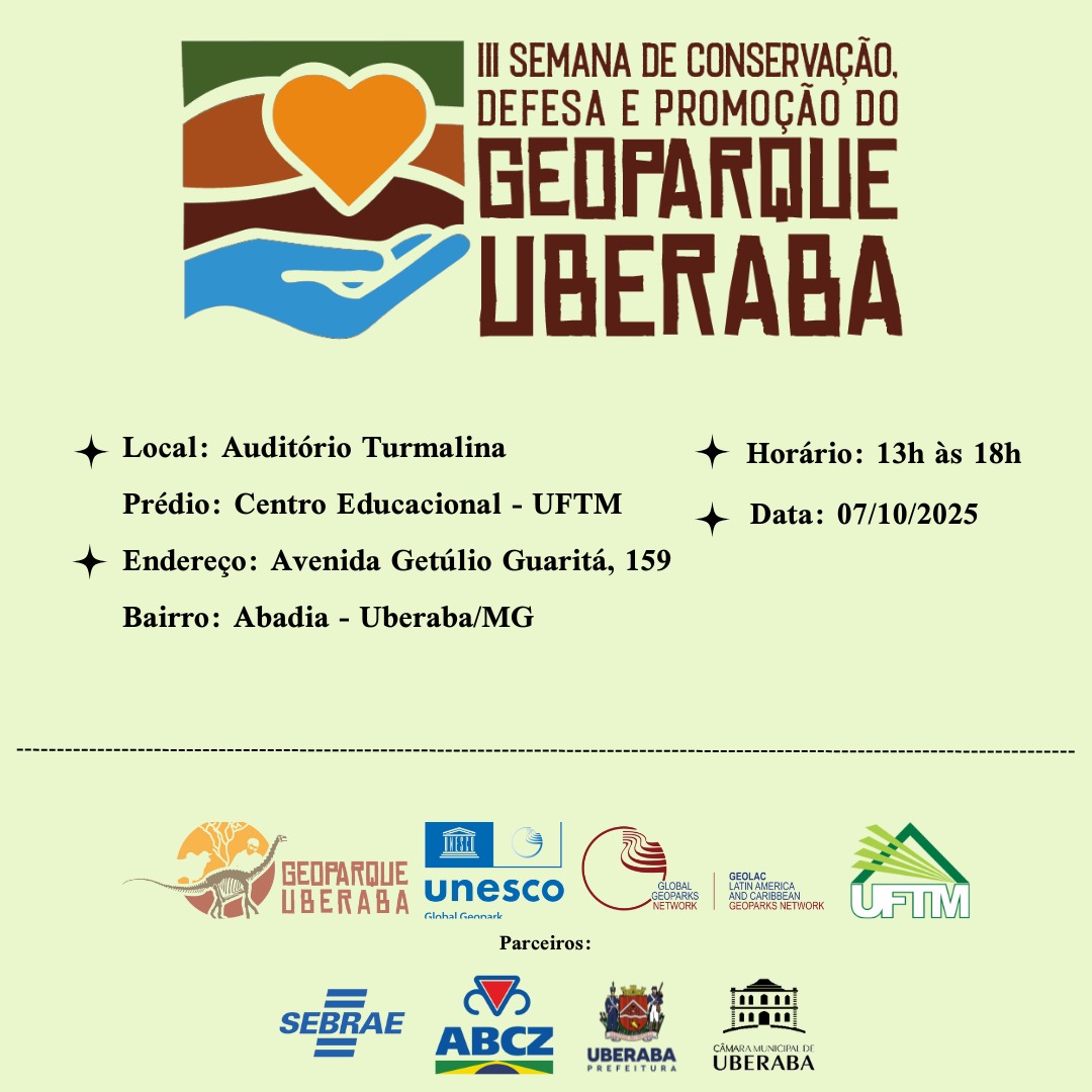 A Universidade Federal do Triângulo Mineiro (UFTM) e a Associação Geoparque Uberaba realizam no dia 7 de outubro a III Semana de Conservação, Defesa e Promoção do...