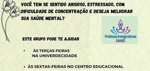 A Divisão de Atenção Estudantil em Saúde (DIAES), da PROACE, convida toda a comunidade acadêmica da UFTM para participar do Grupo de Reiki e Meditação, parte do Projeto "Saúde...