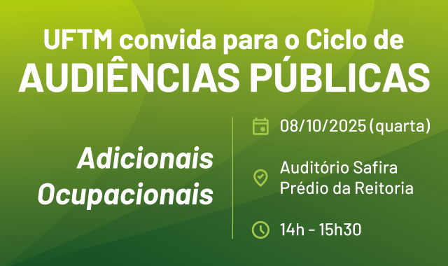A comunidade acadêmica e administrativa está convidada a participar da Audiência Pública sobre Adicionais Ocupacionais, que tem como objetivo discutir e esclarecer aspectos...