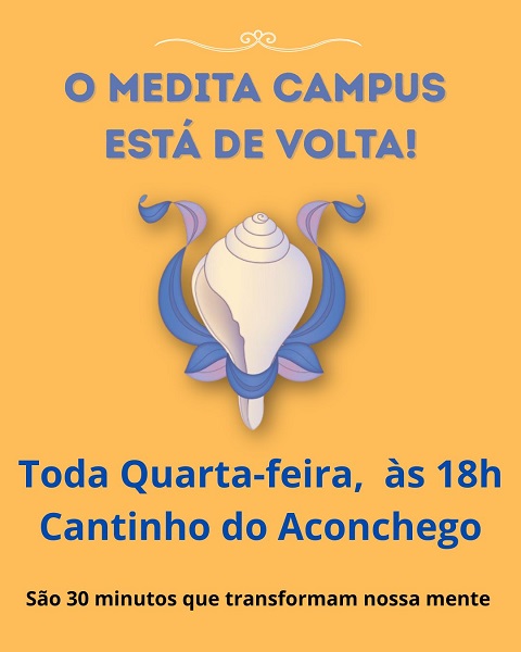A atividade Medita Campus, parte do projeto de extensão Agita Campus, está de volta do recesso para atender a comunidade interna e externa da UFTM. Toda quarta-feira, das 18 às 18h30, no Cantinho do Aconchego da Pró-reitoria de Assuntos Comunitários e Estudantis - PROACE, no Centro Educacional da UFTM, promove práticas de meditação guiada que ajudam a treinar uma mente mais pacífica e, consequentemente, mais feliz.
