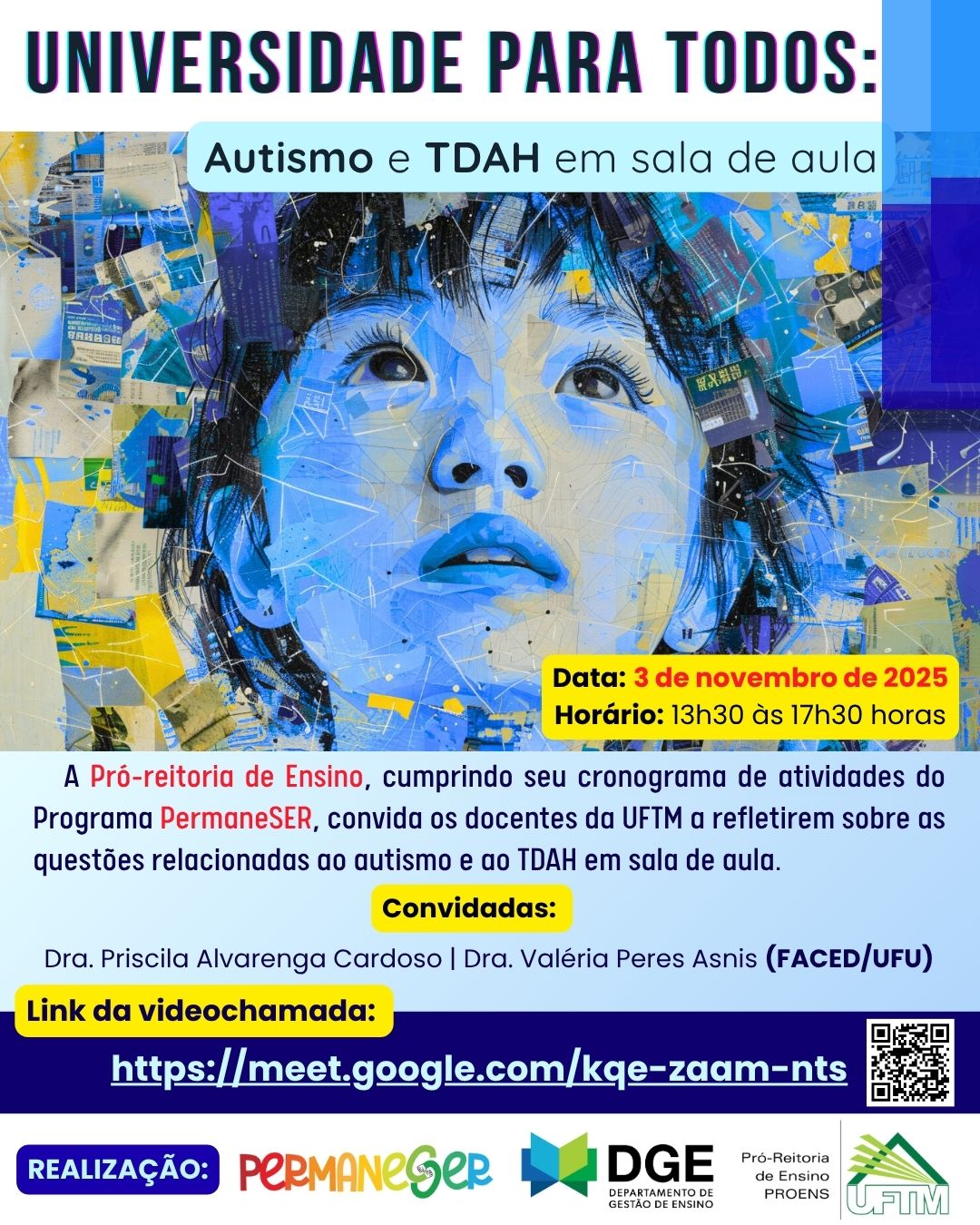 E sabendo que os modos de ensino e aprendizagem são diversos, a PROENS e Programa PermaneSER convida a todos os docentes da UFTM para a atividade que trabalhará questões sensíveis para aperfeiçoamento de sua prática em sala de aula.