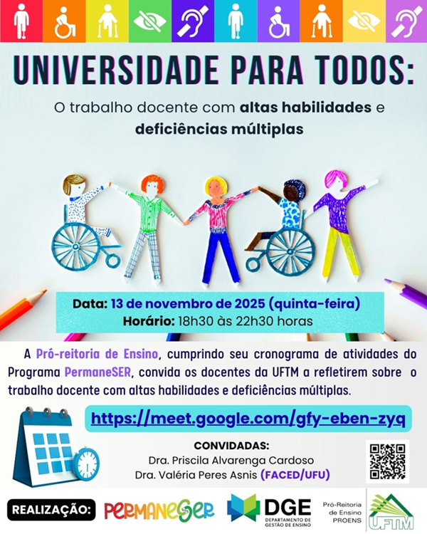 A proposta é promover um espaço de diálogo sobre os desafios e as possibilidades para a construção de práticas pedagógicas que valorizem as potencialidades de todos os estudantes, reafirmando o compromisso da universidade com uma educação inclusiva.
