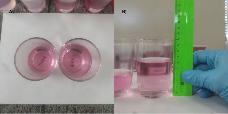 Alguns dos materiais utilizados foram vidrarias comuns de laboratório ou copos de vidro, copos medidores, seringas, régua e refresco de uva em pó. A concentração do refresco de uva é determinada pela comparação cor percebida de uma solução problema com a de outras soluções de concentração conhecida.